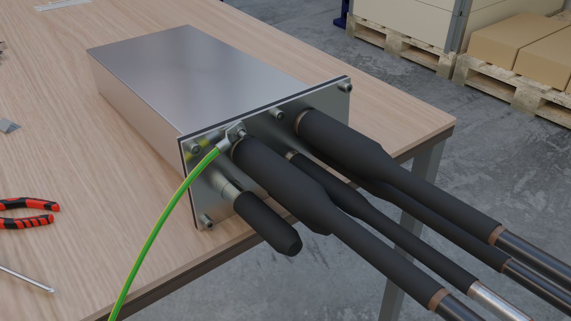 - Hyllylle mahtuu useita kytkentäkaapeleita. Siisti vyyhditys helpottaa kaapeleiden käsittelyä jälkikäteen.