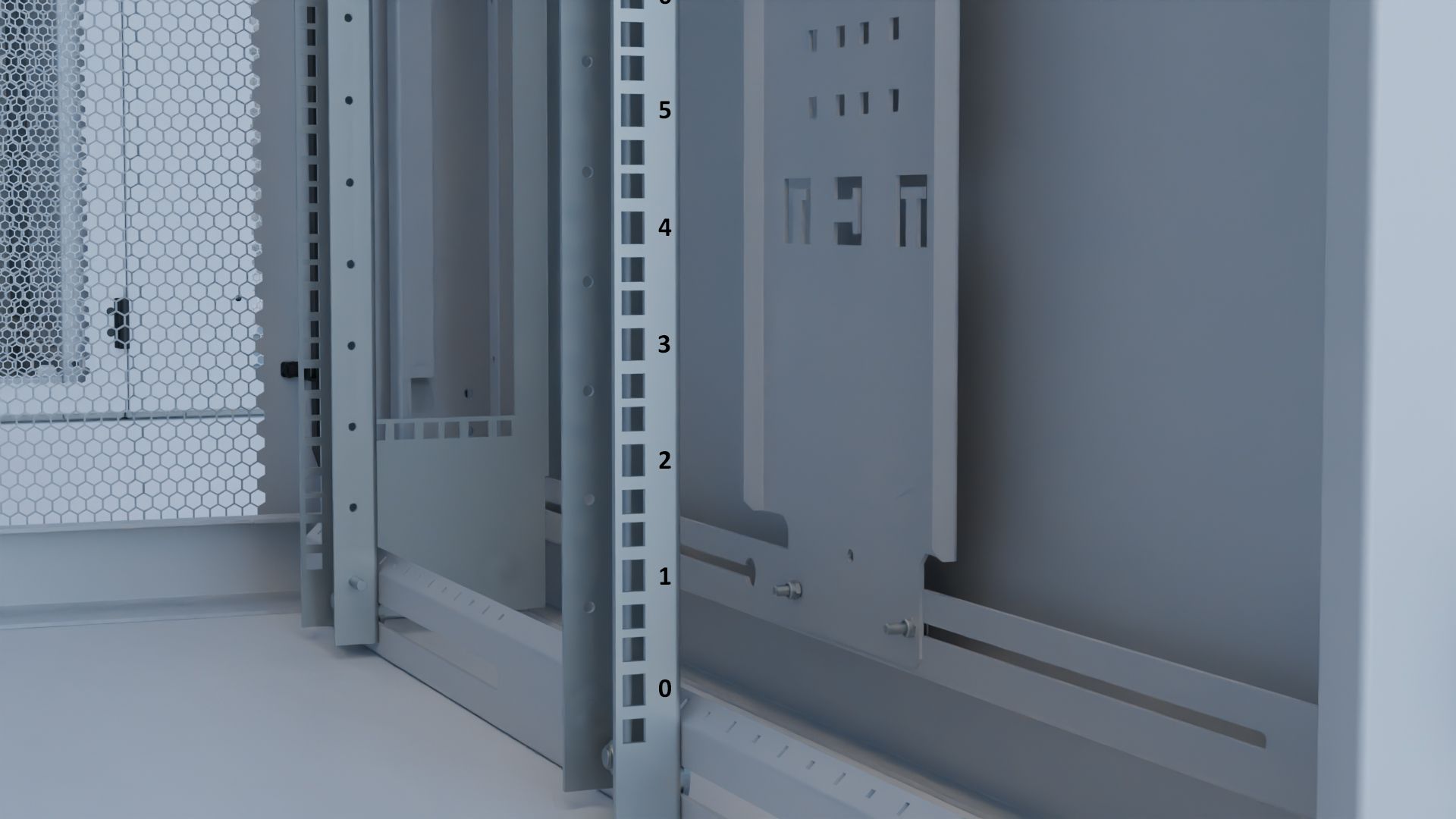 - Älykäs kaapelinhallinta: Pystysuuntaiset kaapelinsidontakiskot portaattomalla syvyyssäädöllä, PDU‑kiinnitysmahdollisuudet kapeille ja leveille yksiköille