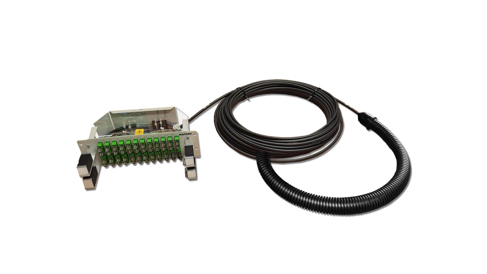 Valmiskaapeleita voidaan tehdä myös niin, että toinen pää on 900 um:n kuiduilla ja toinen pää on 2 mm:n kuiduilla. Tällaista tuotetta on hyvä käyttää silloin, kun toinen pää asennetaan kotelon tai paneelin sisään ja toinen pää menee suoraan laitteelle tai paneelin ulkopuoliseen asennukseen.